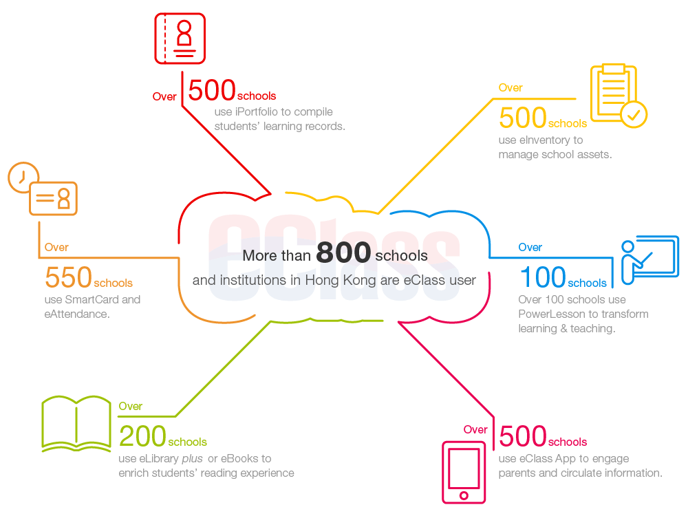 On eClass, all the teaching and learning modules (eg. interactive lesson tools, eHomework), administrative modules (eg. library service, attendance management) and communications modules (eg. eClass Parent App, iMail) are fully integrated within one system. Through single sign-on (SSO), eClass users may access all the modules at once.