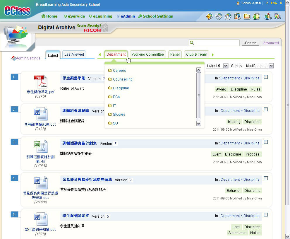 - 掃描學校歷年文件(如:舊生成績表、單據、相片)至系統,數碼化永久保存