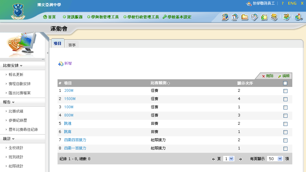 陸運會和水運會是學校每年一度的盛事,不僅能夠提升學生身體的健康狀況和體能素質,還能夠培養學生的團隊協作精神和競爭意識,促進學生的全面發展;同時,陸運會和水運會也能夠增強學校的凝聚力。為確保陸運會和水運會順利舉行,師生往往需要投入大量時間於籌備工作中。「eSports Plus 運動會管理系統」能協助處理這些繁瑣的賽前工作,並有效率地處理比賽當日的賽程安排、名次排列等事項,讓師生盡情投入有益身心的陸運會與水運會中。